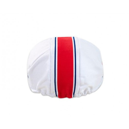 An essential element for the classic cyclist. Keep the sun out of your eyes and sweat at bay. They are a little bigger than most cycling caps and so a better fit fat heads. The motto under the bill on the blue and white caps can be translated as "you can flat" (in reference to Rustines patch kits), or as "you can die." This has been a Rustines motto since just after World War One, when dark humour was popular. On the pink cap, the underside of the cap's motto translates to "I have some". The red caps have no logo on the underside of the bill.