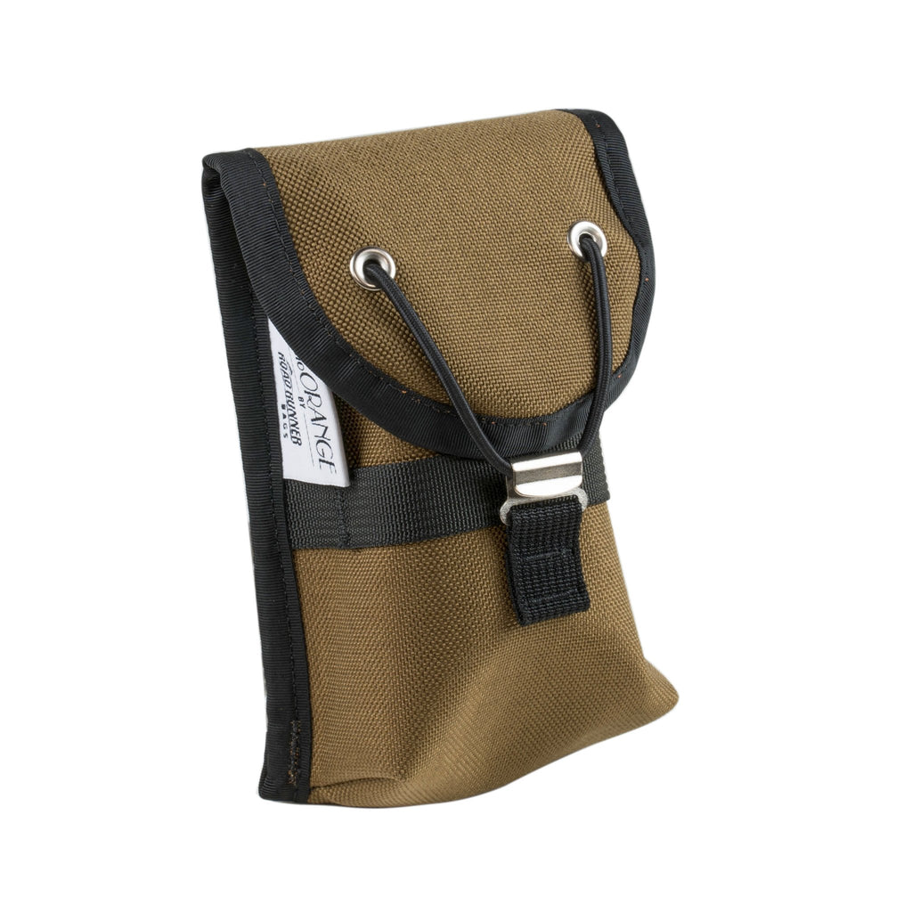 While cell phones have grown, the pockets of handlebar bags have not. It's convenient to keep your smart phone accessible and secure without needing to rummage through a full handlebar bag. This pocket attaches to the Randonneur Bag's molle straps, on the sides and rear of the bag.