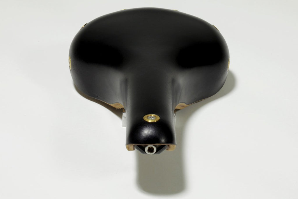 The bolt assemblies at the rear of the saddle are situated behind the area on which the cyclist sits.