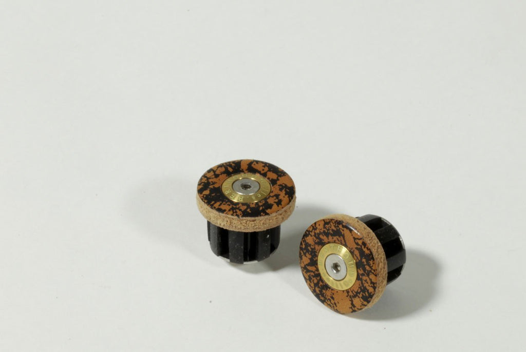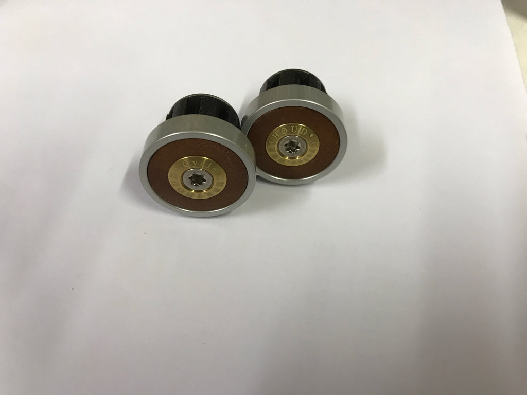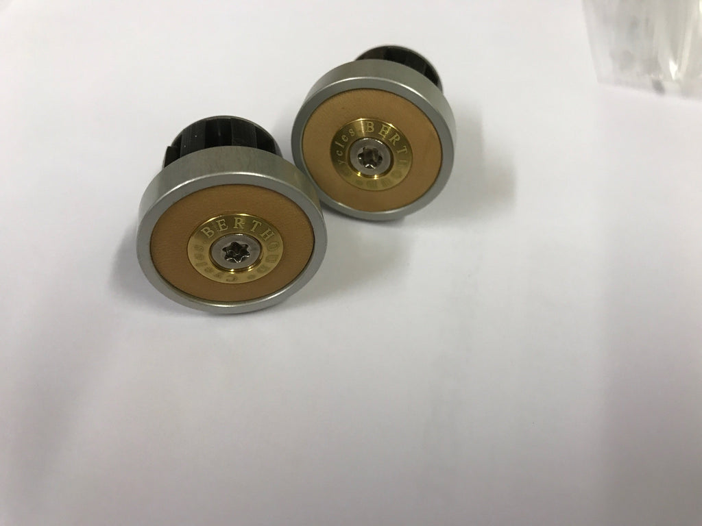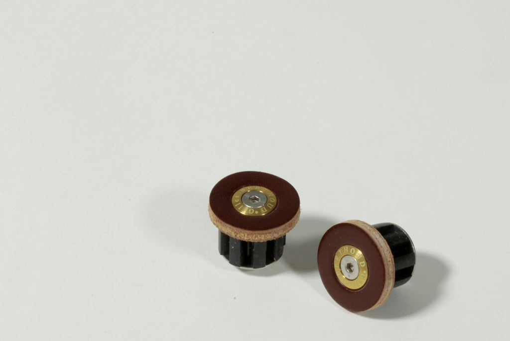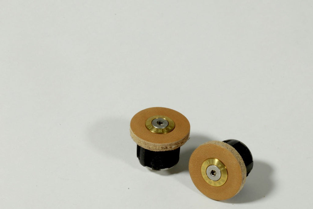 A pair of fabulous thick leather bar end plugs from Gilles Berthoud. Now with or without the CNC turned alloy surround