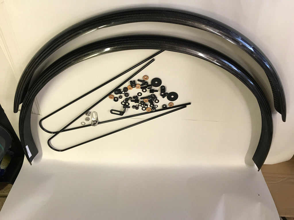Functional and Light  full length carbon fibre mudguards. These guards are very stiff, light and quiet in use. Hand made in Englandthis product is not made by a robot in Taiwan - it is a hand made product and is made for functionality as strong and light mudguard. It is not intended to be an artwork.